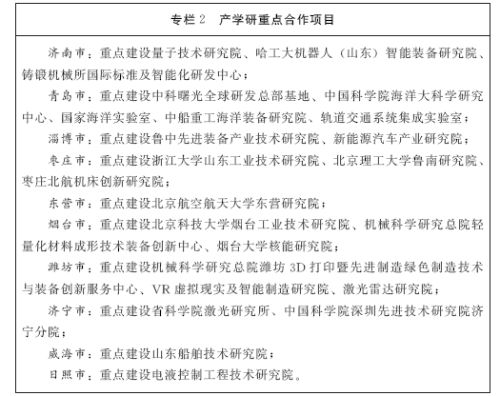2.实施一批高水平产学研合作项目。充分利用高等院校和科研院所人才富集、技术专业、研发力强的资源优势,积极开展产学研项目合作,加快共建一批高水平专业化研发机构,为全省装备产业提供公共技术服务支撑。完善人才引进及使用激励政策,探索产学研深度合作的有效模式和长效机制,为国内外科研机构和高等院校来山东合作发展创造有利环境。鼓励有条件的高校、科研院所和企业共建高端装备新旧动能转换公共实训基地,为培养高技术高技能人才提供支撑。(省科技厅、省工业和信息化厅牵头,有关市政府配合)